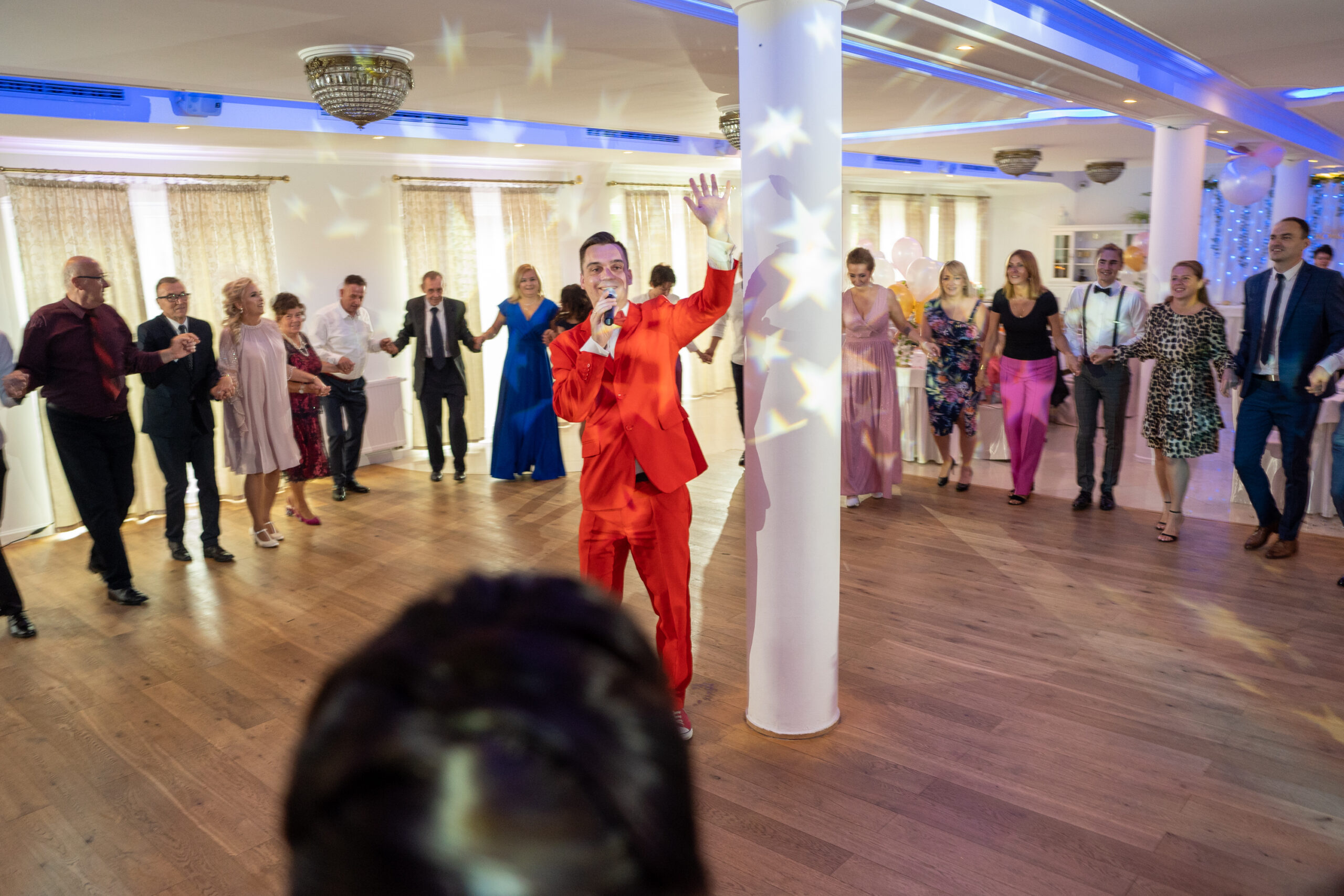 Jako wodzirej prowadzę zabawy integracyjne na parkiecie, zachęcające gości do wspólnej zabawy. Zabawy zrzeszają wszystkich, wznoszę toasty. Zdecydowanie przypada to go gustu osobom, które idąc na zabawe z Dj-em obawiały się ze będą czuły się jak na dyskotece (goście są miło zaskoczeni).